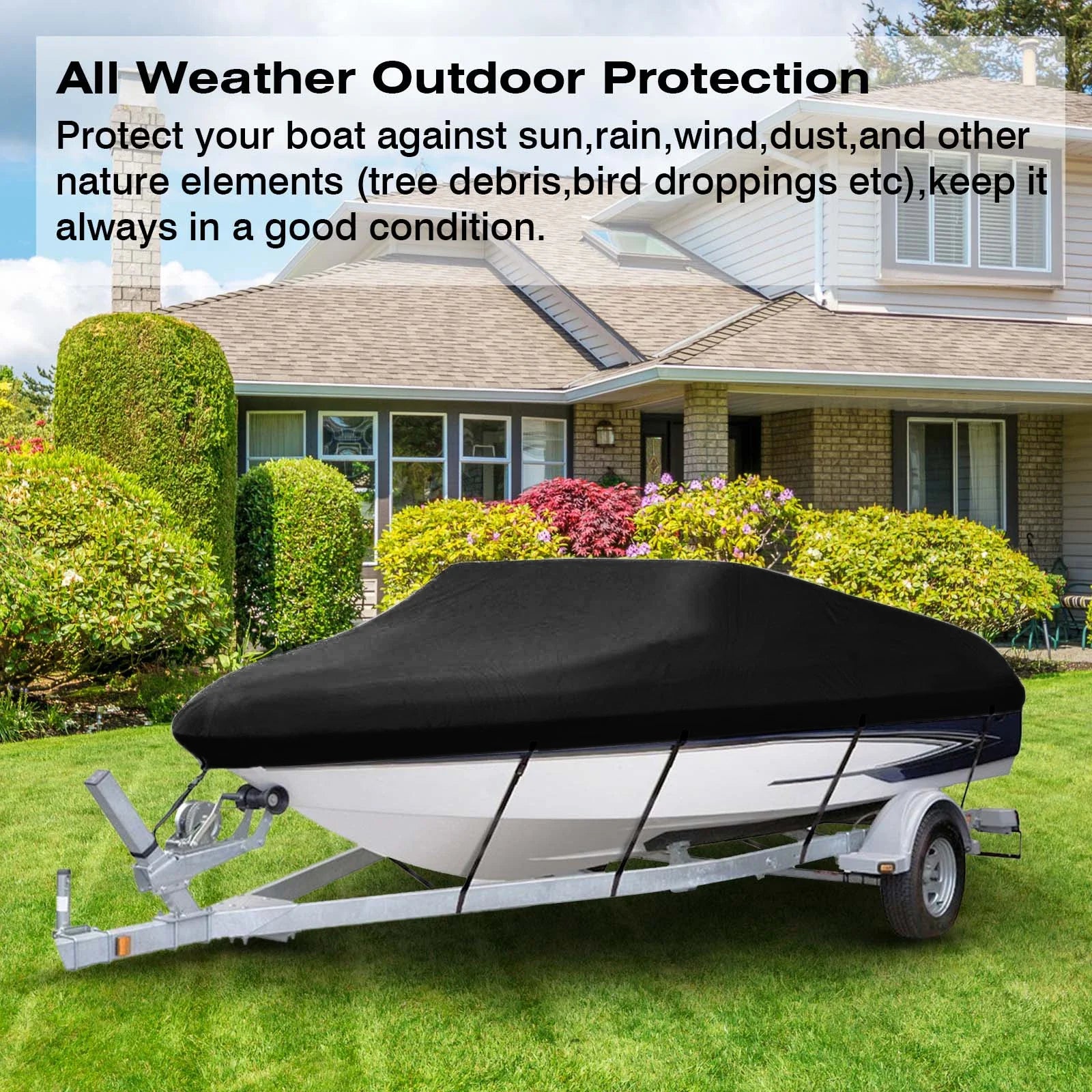 - All-weather marine-grade ripstop fabric (210D) delivers superior durability and water resistance, protecting your boat from sun, rain, salt spray, and debris, so you can trust it in any season.