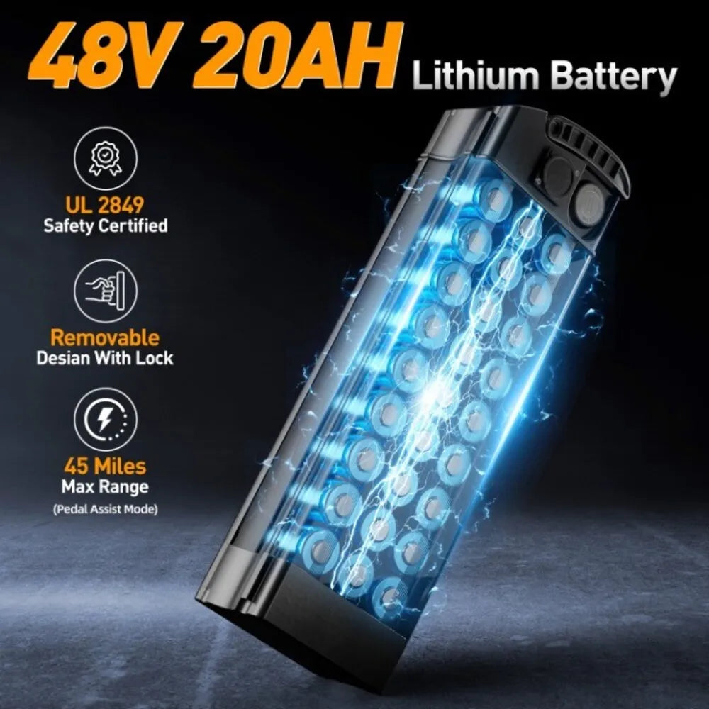 - Reliable Energy: 48V lithium battery powers your ride with strong range and dependable recharge cycles, keeping you moving longer between charges.